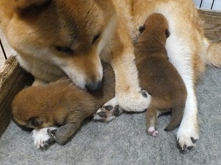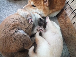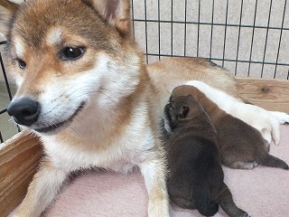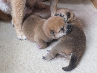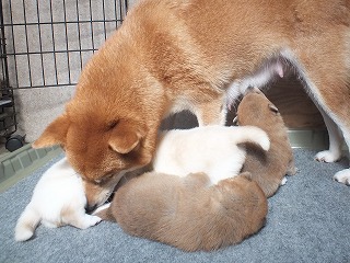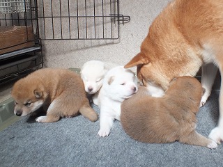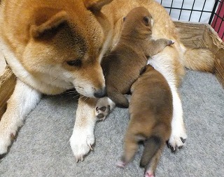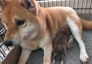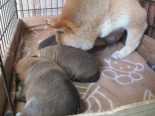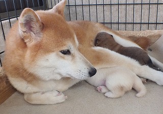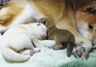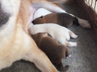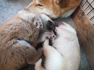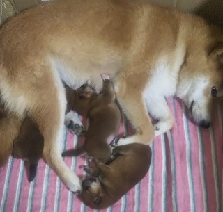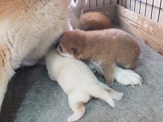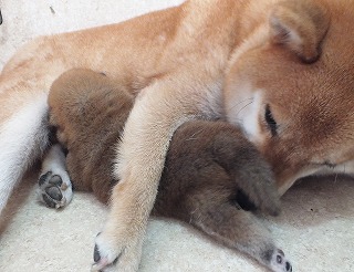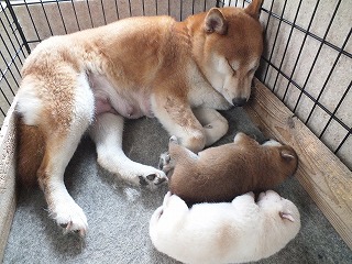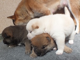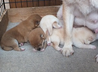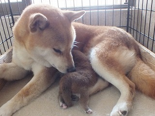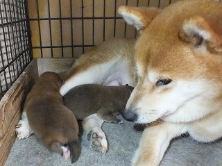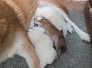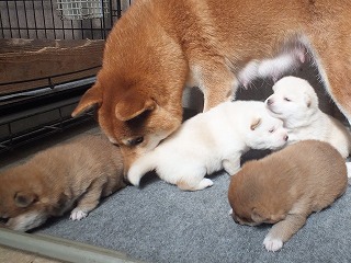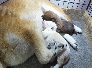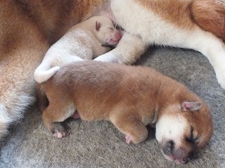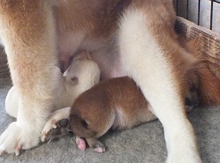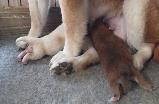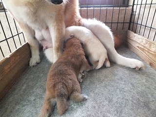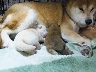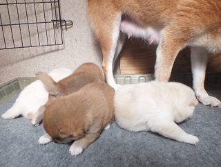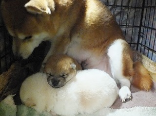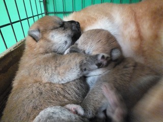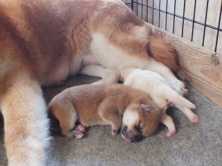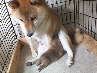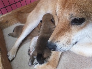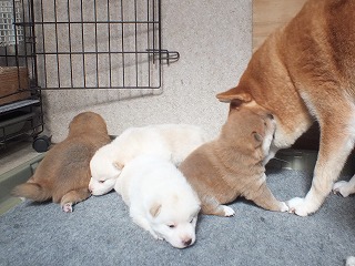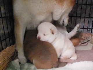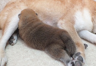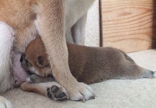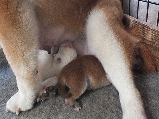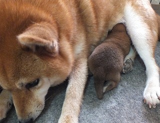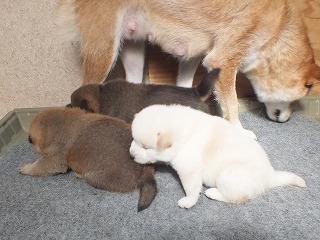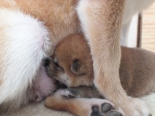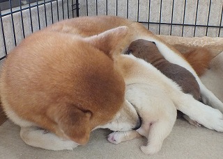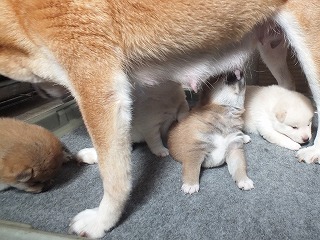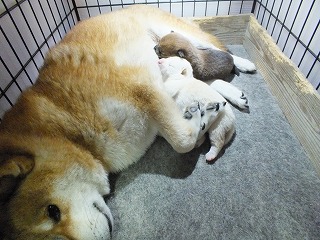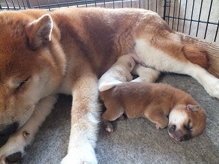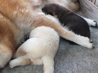 子犬もお乳をたっぷり飲んで、元気に育っています。