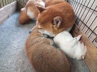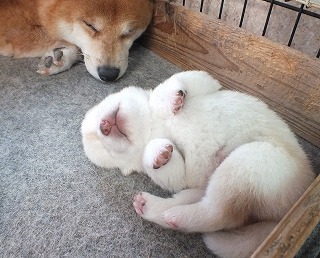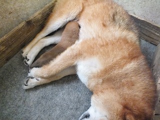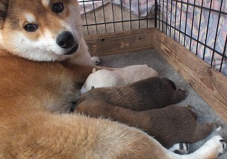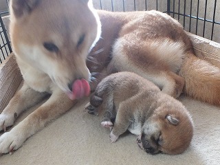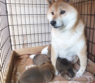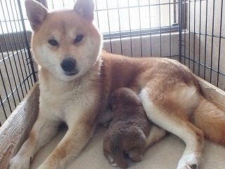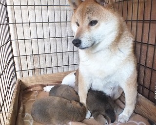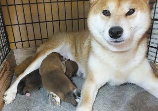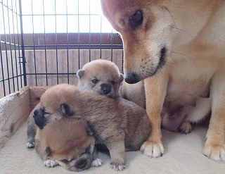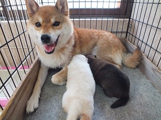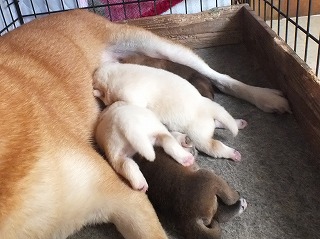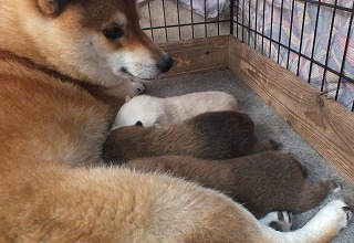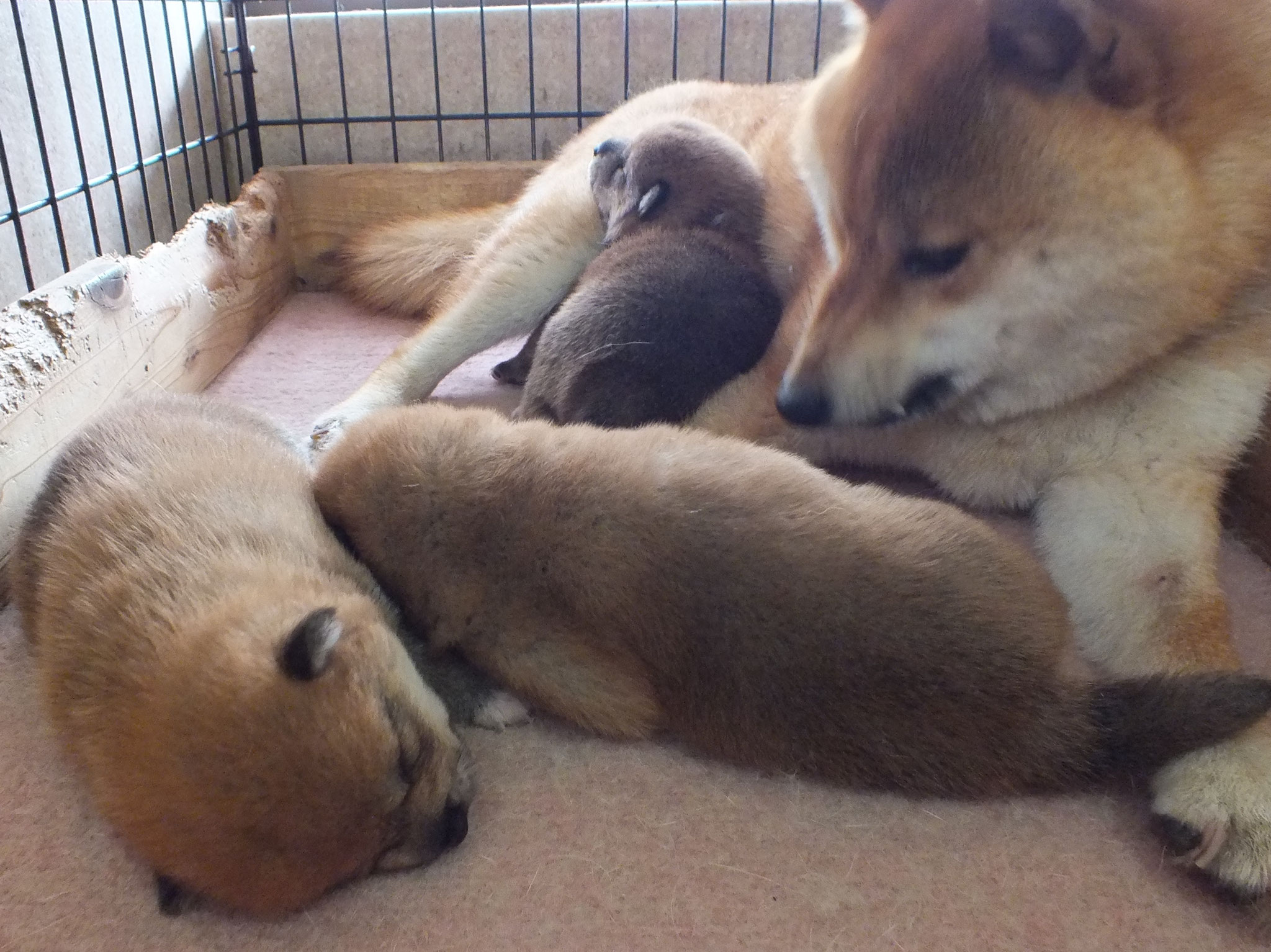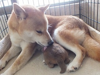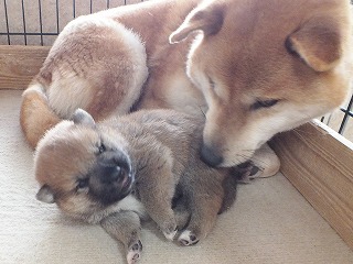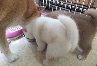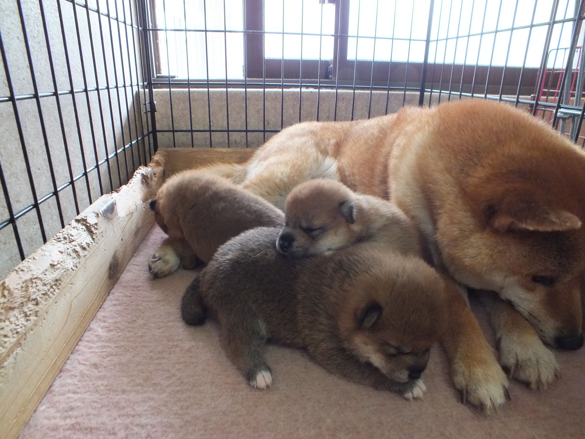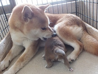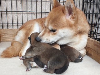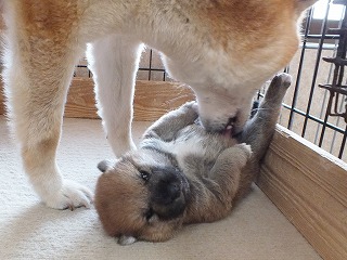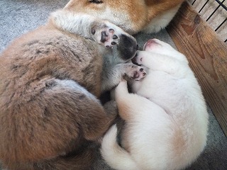 子犬もお乳をたっぷり飲んで、元気に育っています。