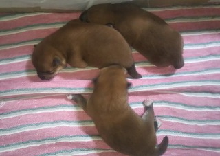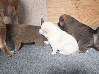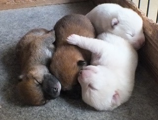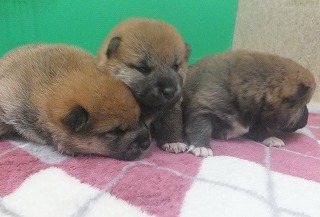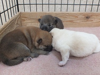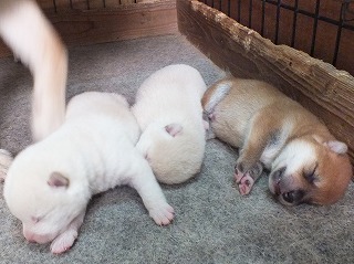 大ももちゃんの子犬 生後13日 目も開いてきました。3頭共元気に大きくなっています。