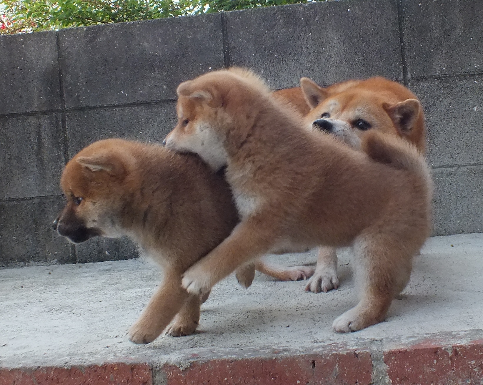 ヨチヨチ歩いて兄弟よくじゃれています。