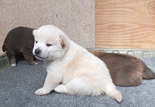 目が開いて可愛くなってきました。白柴はとてもきれいな白です。